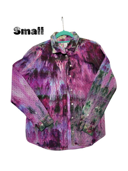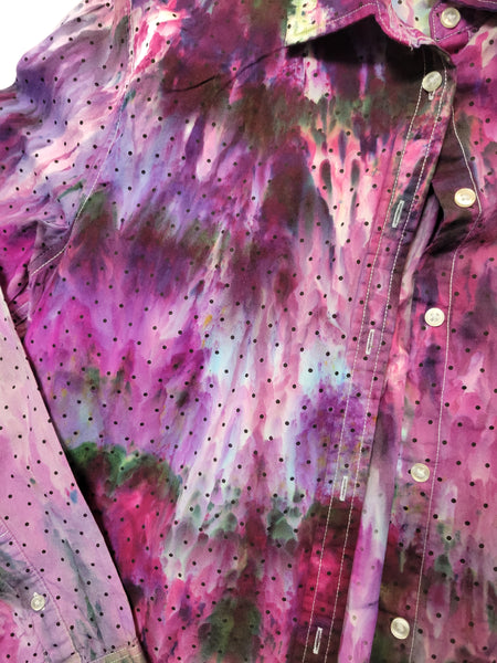 Sweet polka dots button down shirt in our watercolor garden pattern!