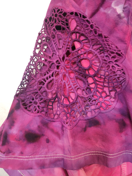 Our beautiful sunset colors in our liquid sunshine style on this beautiful shirt with embroidered sleeves!
